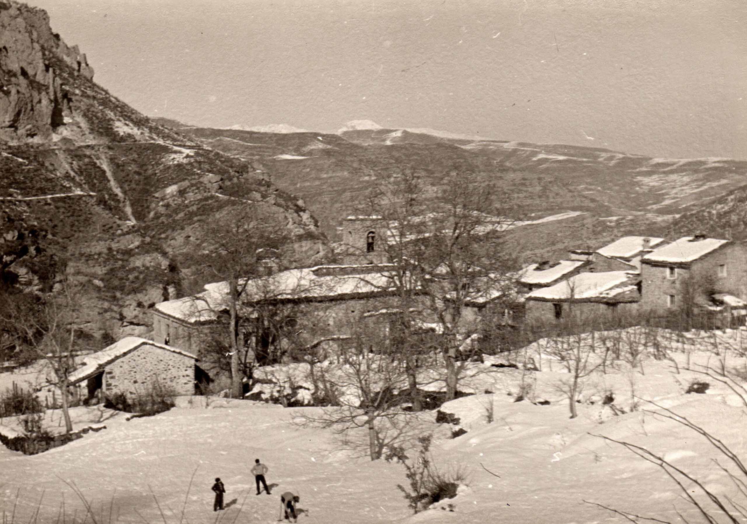 Piediterra sotto la neve vista da “li virlinghë”, con il lucernario della cupola sul tetto della chiesa di San Rocco.
