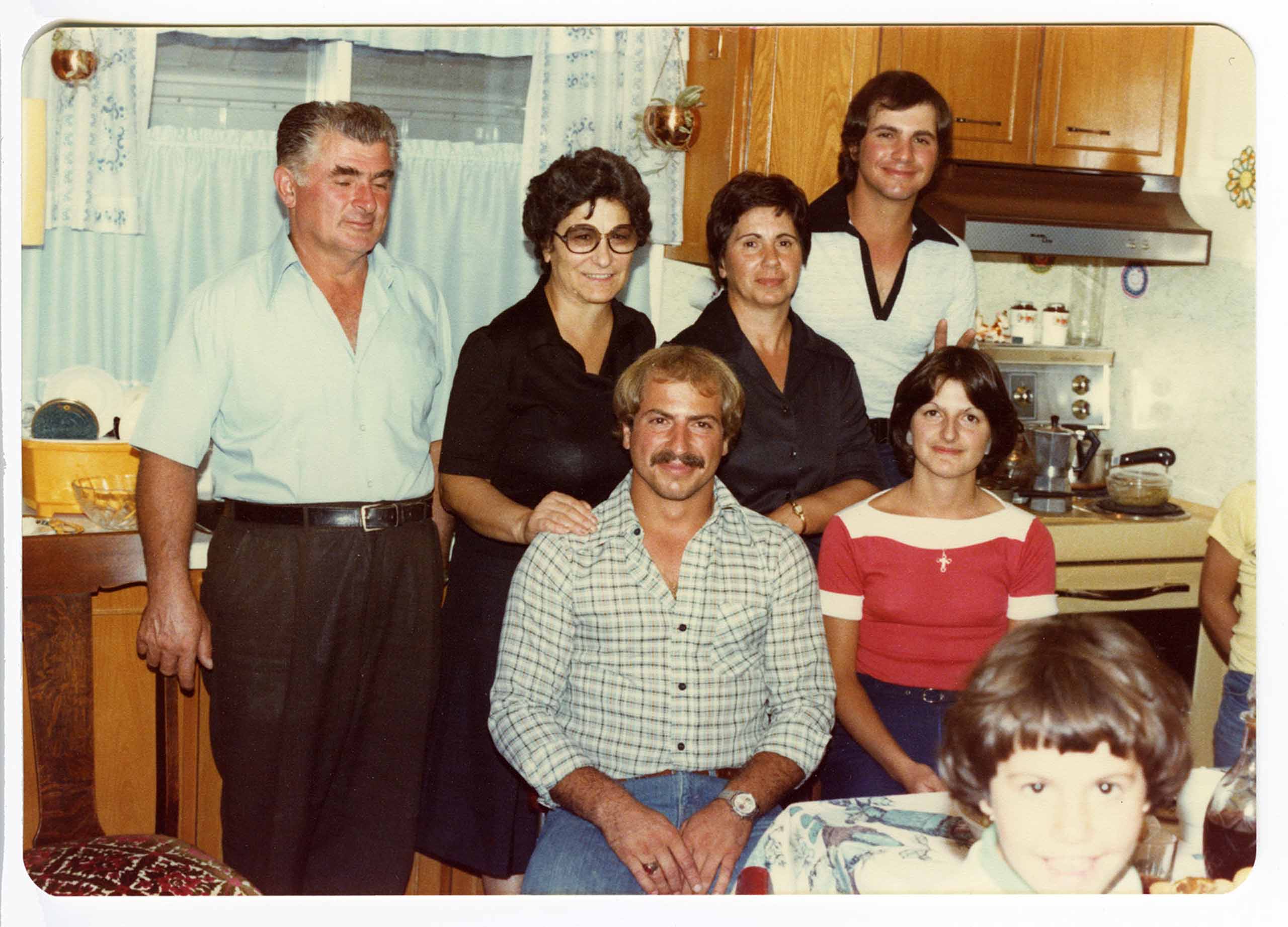 La famiglia di Cesare Bellisari ad Hamilton, in Canada negli anni ’60: al centro è seduto Domenico, fratello di Italia (a sinistra), moglie di Cesare Bellisari (a destra); alle spalle i figli Brigida, Mario, Giose, Tonino, Lorenzo, Maria e Virginia.