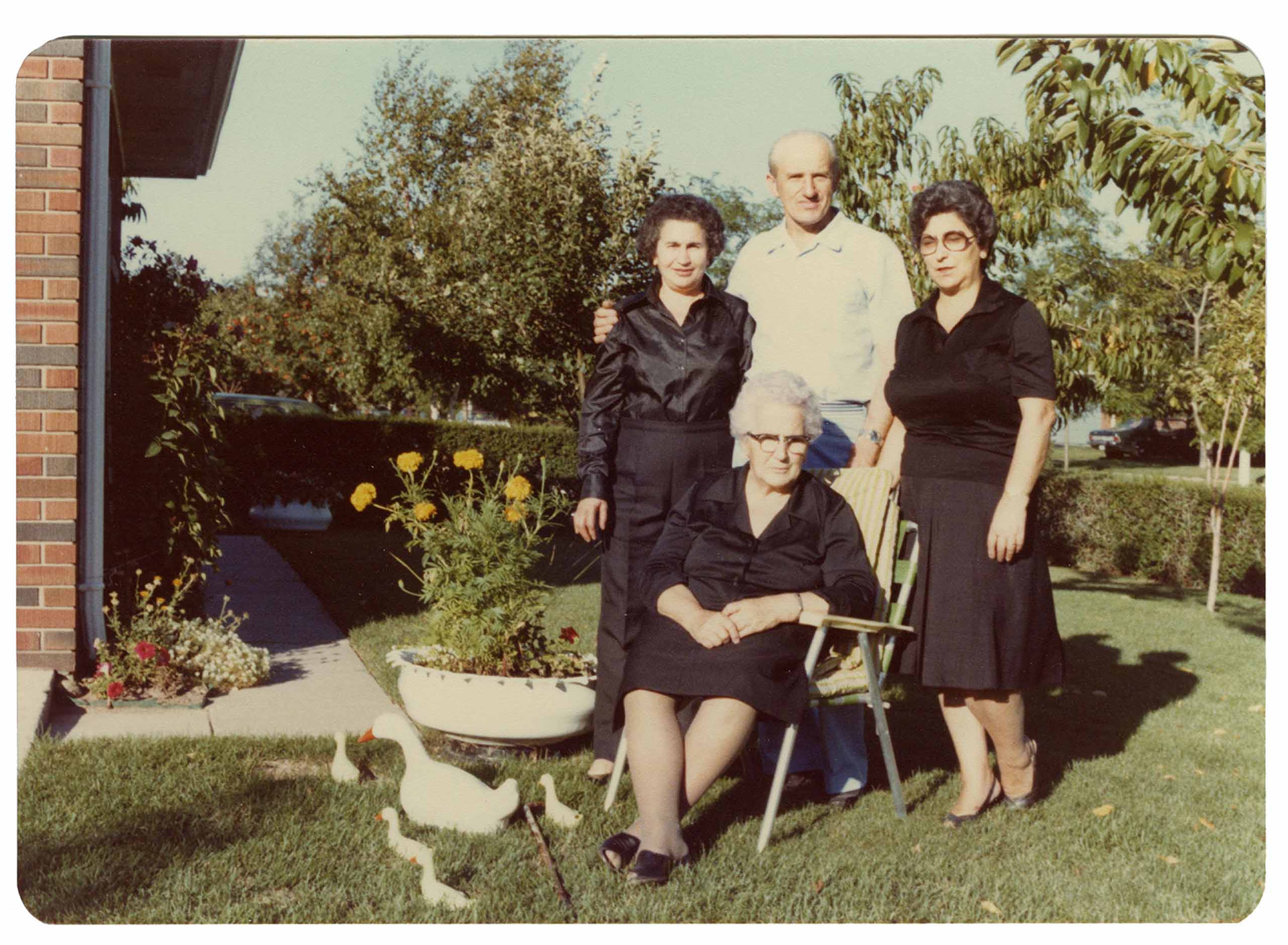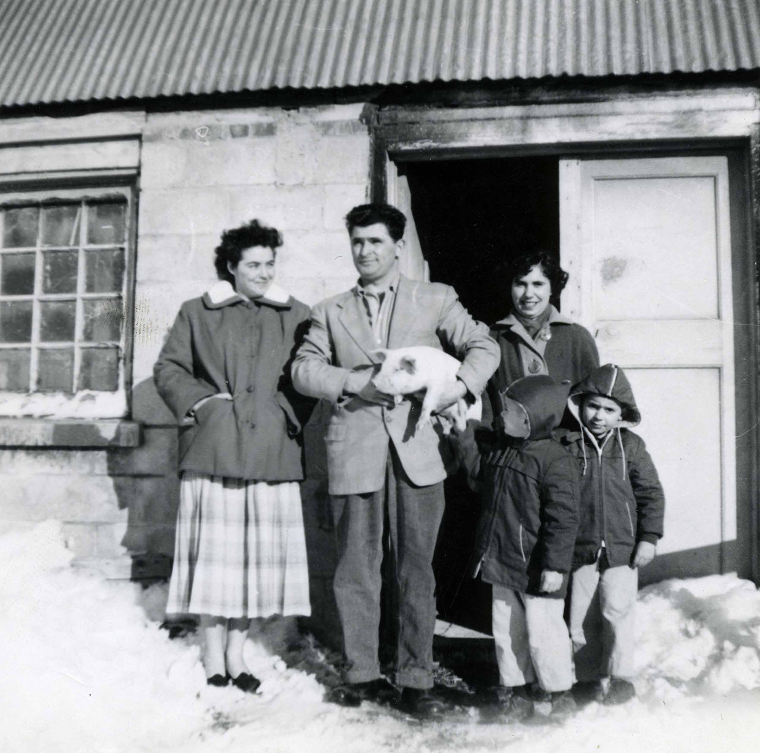 La famiglia Bregovic-Annibale nella fattoria presso il comune di St. Catharines, in Ontario, Canada. Da sinistra Stan Bregovic, Filomena Annibale (sorella di Delfina), Delfina Annibale (moglie di Bregovic) e i figli Pino (in basso), Lary e Maria.