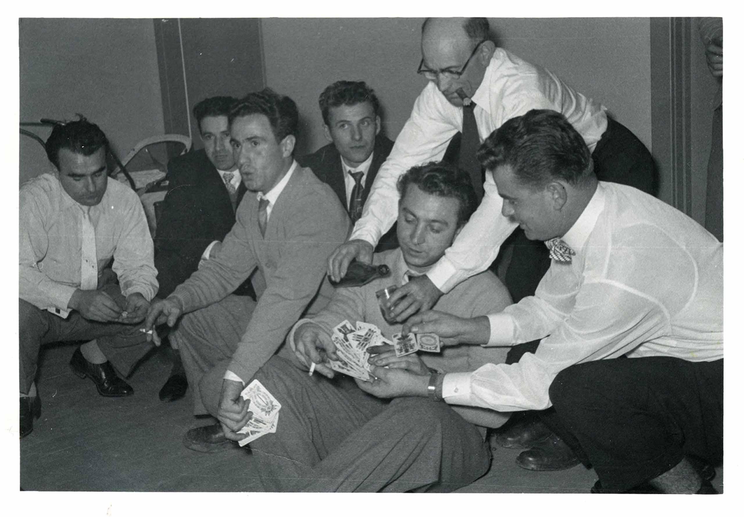 Partita a carte in Canada: in alto con occhiali Nazzareno Annibale e a sinistra, con le carte in mano, Edmondo Annibale.