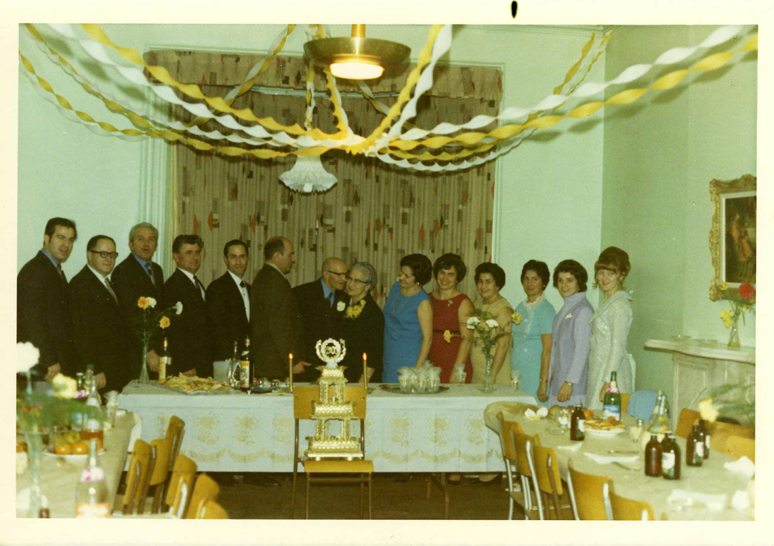 Festa per i cinquant’anni di matrimonio di Cesare Annibale e Giuseppina Fante; a destra e a sinistra le figlie ed i figli con i rispettivi mariti e mogli.