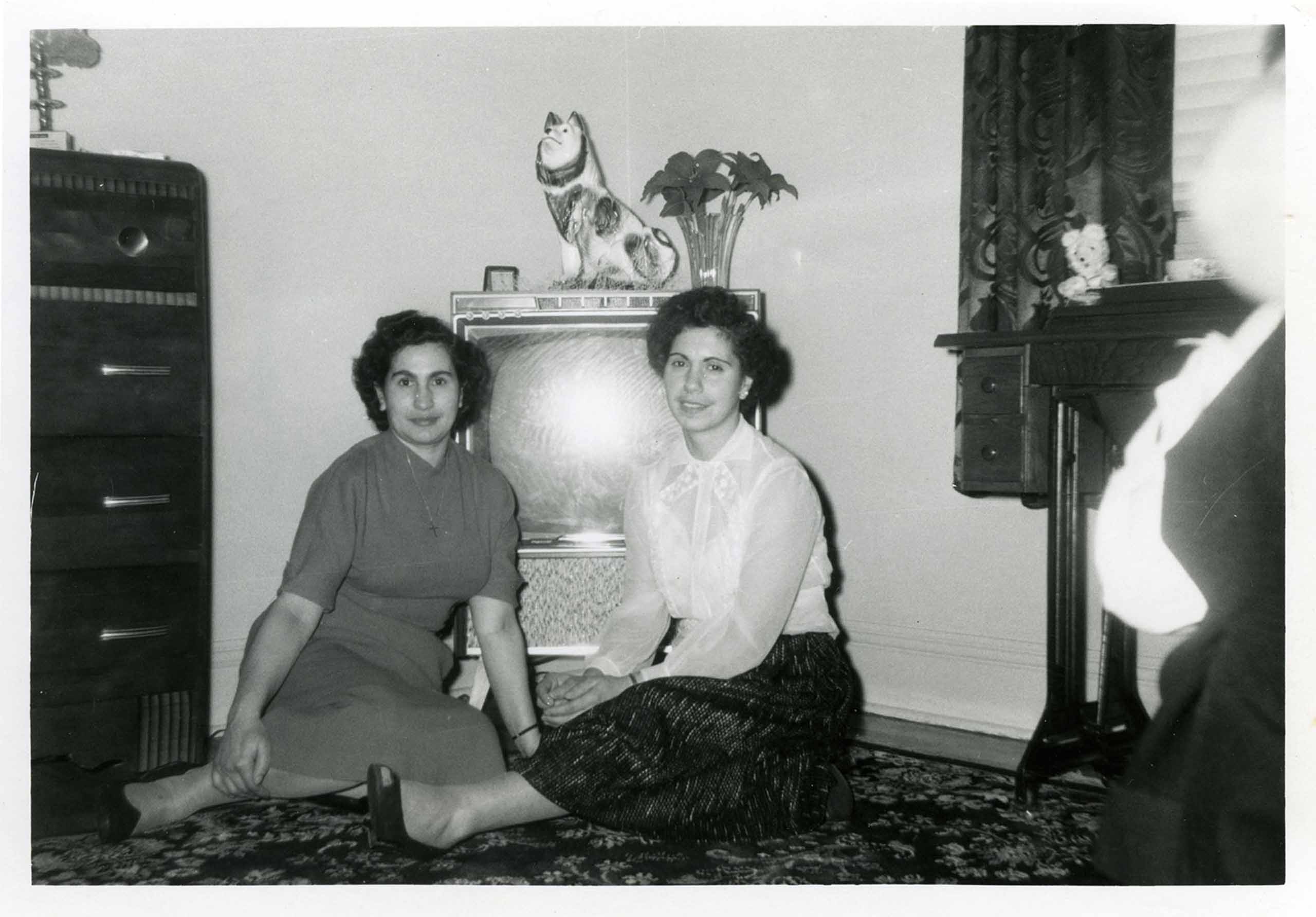 Concetta e Delfina Annibale ad Hamilton, in Ontario, con la prima televisione.