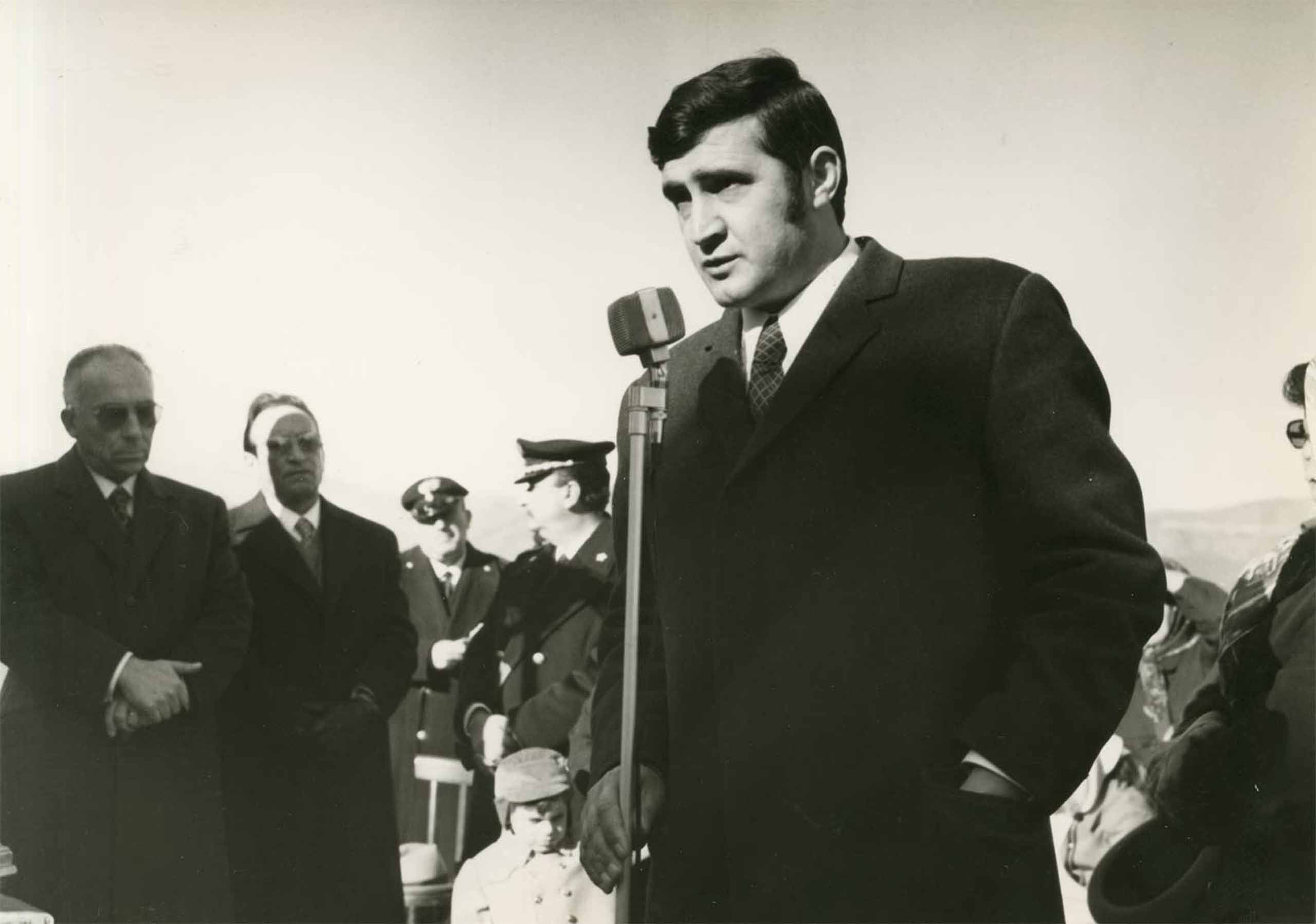Discorso per l’inaugurazione della lapide ai caduti delle due guerre mondiali; a sinistra il presidente del Consiglio Regionale dell’Abruzzo Emilio Mattucci.