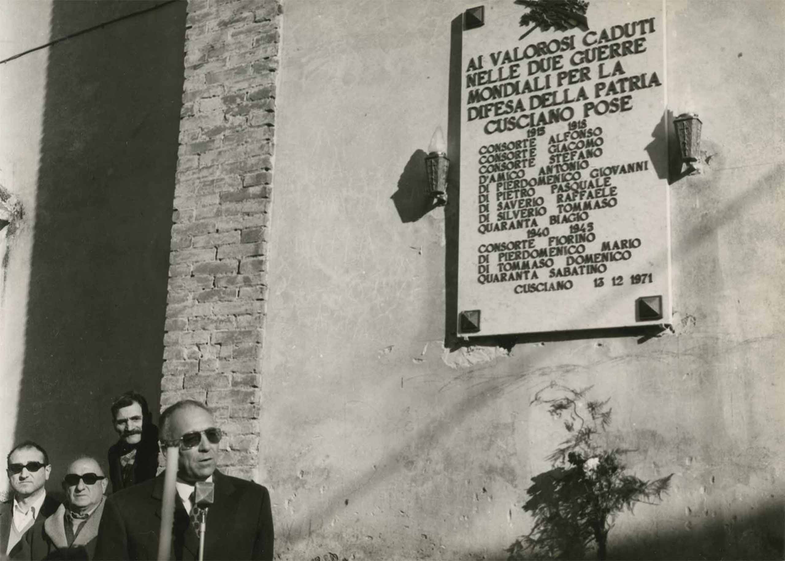 Un momento dell’inaugurazione della lapide commemorativa per i caduti delle due guerre mondiali; a sinistra il presidente del Consiglio Regionale dell’Abruzzo.